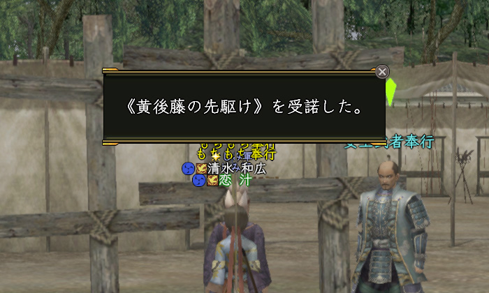 で、実際やってみたらホントに簡単で、(1)まずは廃城に移動して〝雑賀衆代行〟に話しかける。