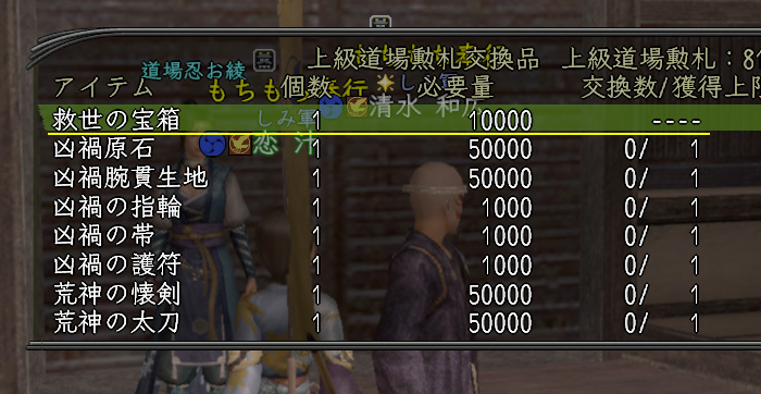 〝黄泉之狭間〟では、〝凶禍オノゴロ〟同様〝上級道場勲札〟を貯めてアイテムを交換する仕組みのようです。別種のポイントじゃなくて良かったです。
