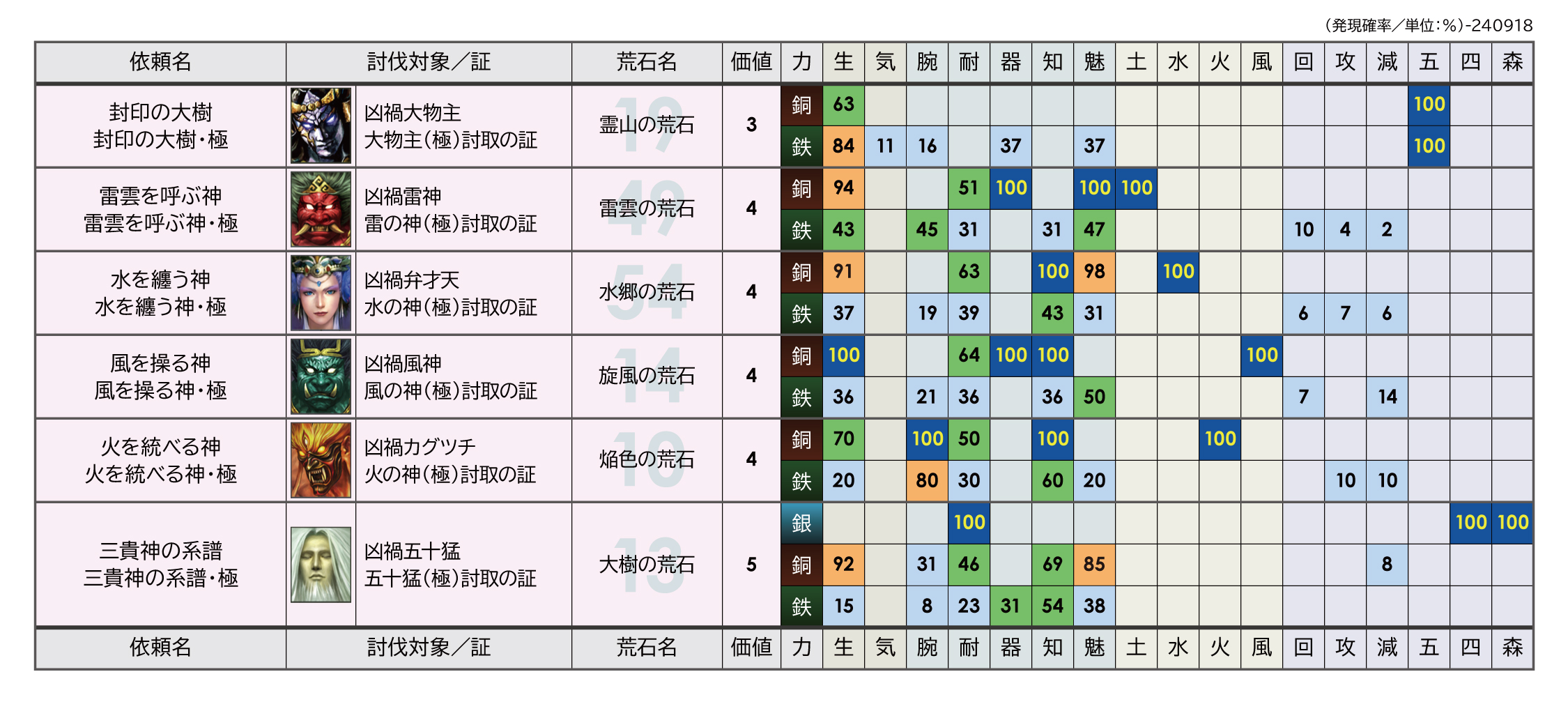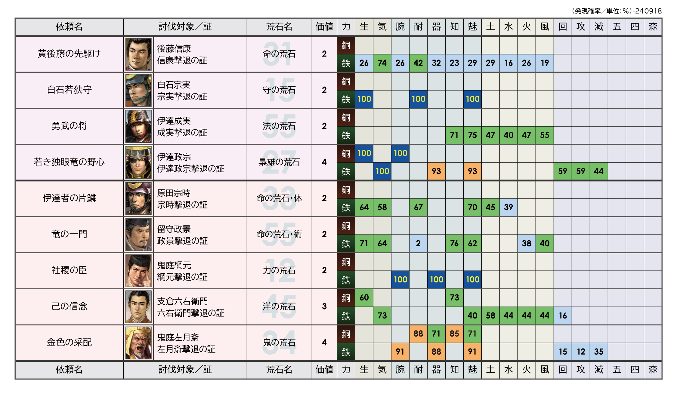 | 攻 | 攻の秘伝 | 9% | 5% | 3% | 2% | 1% |