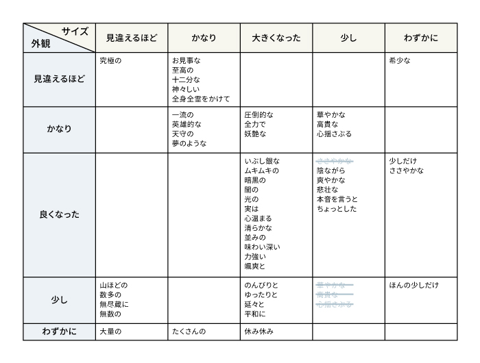 この表をすでに作っておられる方がいらっしゃいましたらすみません。とりあえず自分用ってことにしときます。