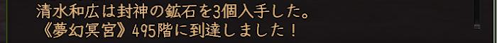 なんかよくわからんけど1回全滅して、それ以外は順調に進んで495階に到達したところで本日終了。