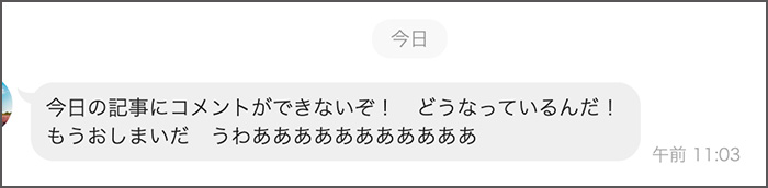 とりあえずどういう状況でコメントが出来ないのか確認すべく、ちょっとコメントの書き込みのテストをしてみます。