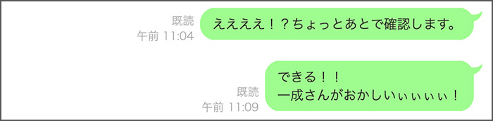 どうでも良い話ですが、金曜日の昼前に一成さんから突然LINEが来たんですよ。
