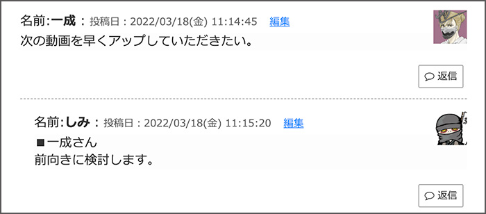 一成さん成りすましてコメントを書き込み、そして自分でレス。