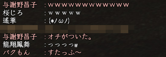 ご参加頂いた皆様ありがとうございます。仕切ってくださった龍槍さん、与謝野さんありがとうござい・・・・ありがとうなのか?