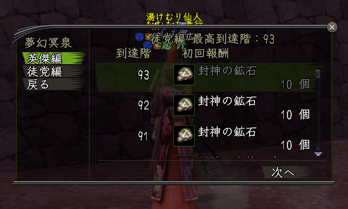 昨日の続き、〝夢幻冥泉〟の英傑編の93階から。