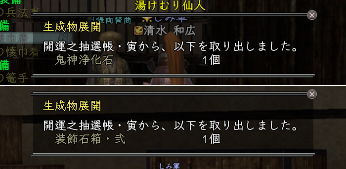 - 上級道場勲札交換(虚空の鬼神石/受継鬼神珠・壱/双継鬼神珠・壱)