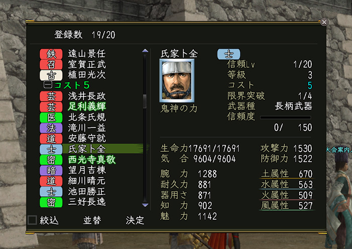 とりあえず英傑の登録ウィンドウを出して、例えばここだったら氏家卜全を選択するでしょ。