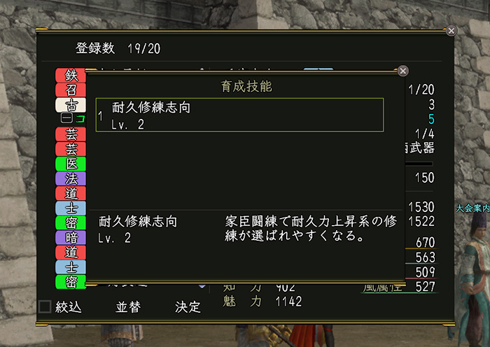 - 英傑の〝育成技能〟は、英傑一覧のリストから「page up」キーで表示可能