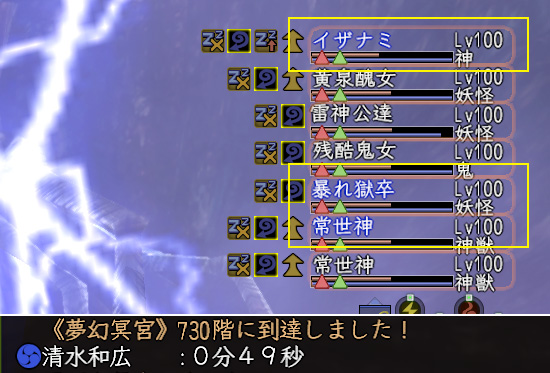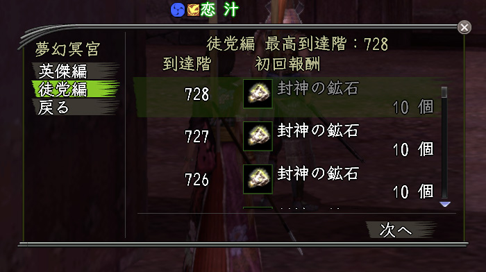 メンテ前。休止垢が切れますので〝夢幻冥宮〟徒党編をがんばります。728階から。
