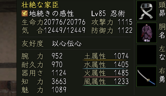 で、先日疑問に思ったこと「雲隠れ才蔵の知力を上げたら痺れ時間は伸びるのか?」を確認しました。