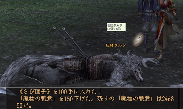敵の生命も変更なし(アイテム+アイテム+爆撃ち砲火で倒せる量)、獲得きび団子も変更なし(100)でした。