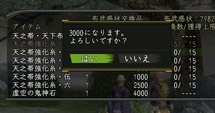週間上限なしに〝虚空の鬼神石〟を入手できる唯一のポイントとして、コツコツ貯め続けていた8万ポイントもの〝布武感状〟を惜しみなく使います・・・いや、めっちゃ惜しいぃぃぃけど。