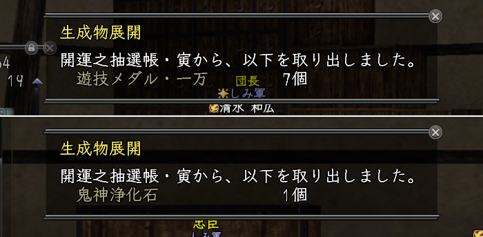 - 上級道場勲札交換(虚空の鬼神石/受継鬼神珠・壱/双継鬼神珠・壱)