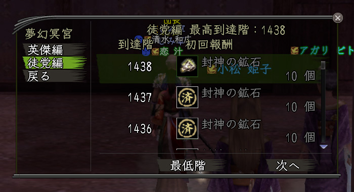 時間が微妙ながらも、今週から始まった帰参者キャンペーンの恩恵を受けて〝夢幻冥泉〟の徒党編へ。