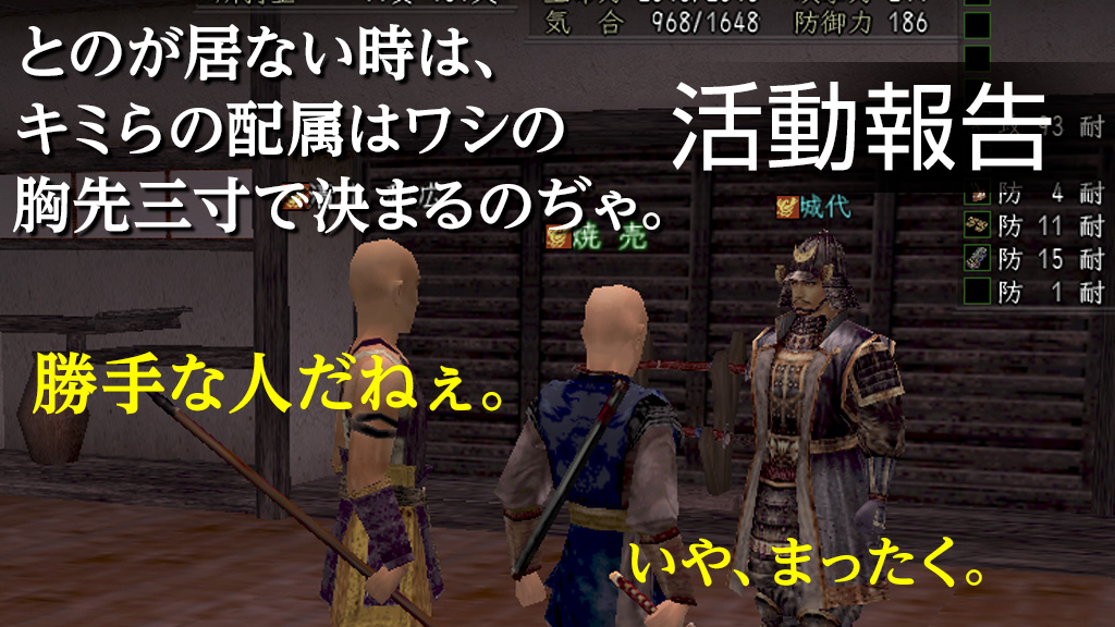 現地募集の巫女薬師さん以外は、みんな武将なんて初めて。ボクらの不安とはよそに、話が簡単にまとまっていきます。