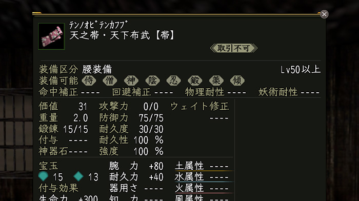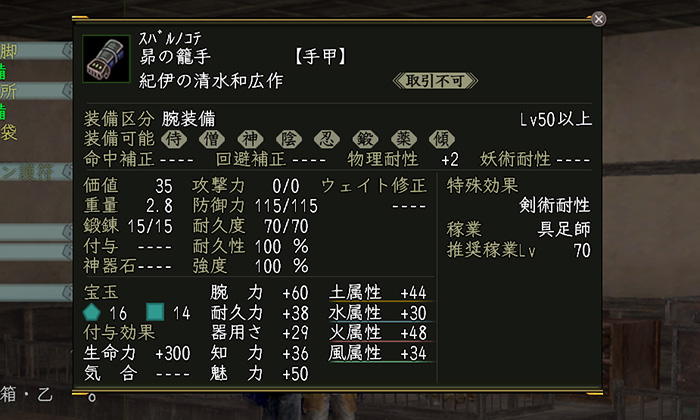 【完了(2023.1.28)】。「目指せ!攻撃力4,800計画」の一貫として、腕力を80に変更し宝玉を入れる。生気・八を入れてたので、結局生命・八を上書きで入れ直して完成。