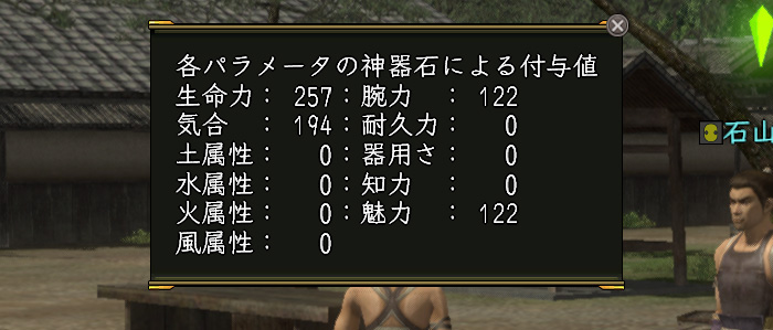 頭と胴装備については、195の神秘を入手してから(という夢を見ている)作り直す予定なので、武器のような本気石ではなく、多少の繋ぎとしての神器石を準備。