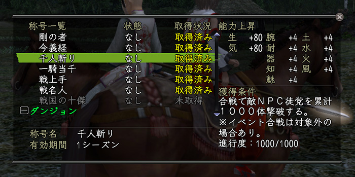 2023年1月29日、悩みに悩んだ挙げ句、合戦場の称号〝千人斬り〟を獲得しました。