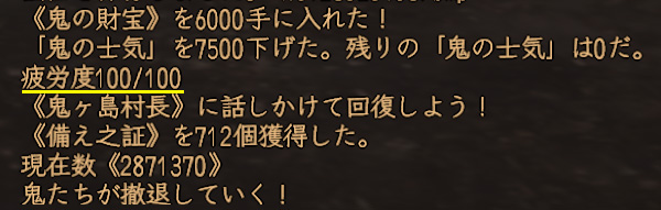 ボクは「単眼鬼を倒し続けて、宝箱が沸いたら回収。その際に疲労度回復」の周回です。