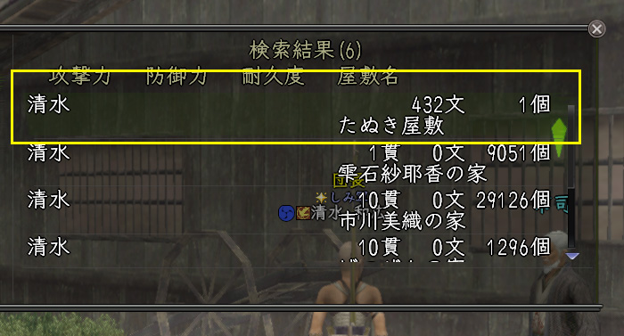 即座に「たぬき屋敷」に移動して清水を購入。まったく・・・412文の赤字だな!