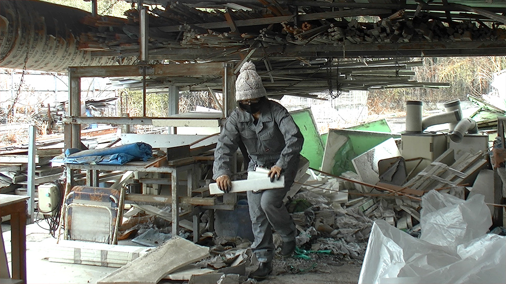奥のエリアは、そうした仕事で使っただろう型枠の一部と発泡スチロールの残骸が散乱しています。