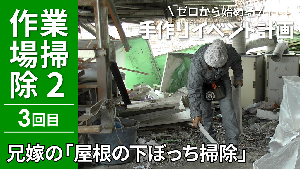 2月10日にが一人で作業場(屋根のある箇所)の奥エリアを掃除した時の動画となります。
